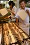 CLTは、板の繊維方向が直角になるように交互に張り合わせている(林野庁提供)【拡大】