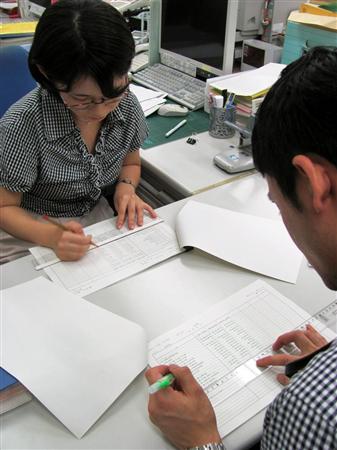 各省庁が提出した平成27年度予算の概算要求について、データの照合作業を行う財務省職員ら=29日、財務省(小川真由美撮影)【拡大】