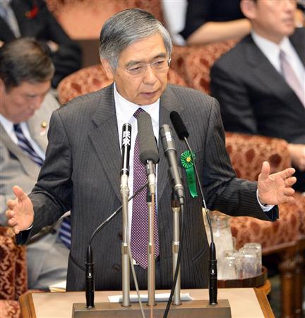 参院予算委員会で民主党の福山哲郎氏の質問に答える日銀の黒田東彦総裁=7日午前、国会内(酒巻俊介撮影)【拡大】