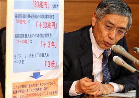 「駆け込み需要の反動や原油価格の下落が長引くとデフレマインドの転換が遅れる可能性もある。そのリスクを未然に防ぎ、物価目標実現のためにできることは何でもやる」。口をついたのは、「2年で2%」の物価上昇目標を死守するという強い決意表明だった。