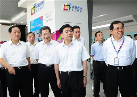 華星光電の第2期事業向けパネル工場の上棟式に出席する同社と地元共産党委員会の幹部ら=9月、広東省深セン市(中国新聞社)【拡大】