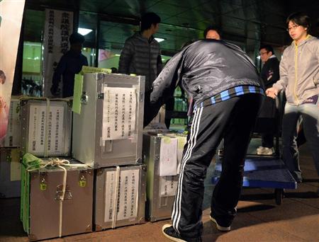 開票所に集まりだした投票箱=14日、東京・新宿(撮影・桐山弘太)【拡大】