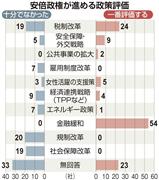 アンケートでは、安倍晋三首相のこれまでの取り組みで評価する政策や不十分な政策、今後期待する政策を、3番目まで順位をつけてもらう形でたずねた。