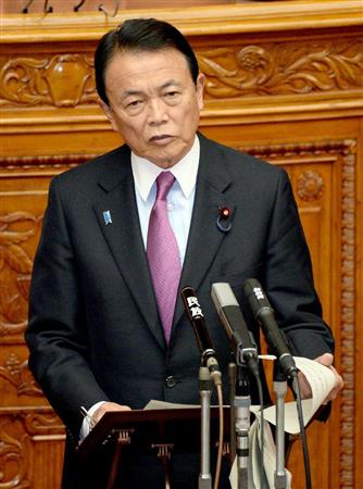 参院本会議で財政演説する麻生太郎副総理・財務金融相=26日午後、国会・参院本会議場(酒巻俊介撮影)【拡大】