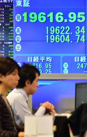 26日の東京株式市場は大幅反落した。日経平均株価の終値は、前日比275円08銭安の1万9471円12銭。東証1部銘柄の83%超にあたる1564が値下がりし、主力株は大部分が下落した。