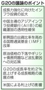 20カ国・地域(G20)財務相・中央銀行総裁会議が16、17日の両日、ワシントンで開かれる。日本からは麻生太郎財務相と黒田東彦日銀総裁が出席。世界経済に不確定要素が山積する中、各国がどのような協調体制をとれるかが主要議題となる。また中国が年内の設立を目指すアジアインフラ投資銀行(AIIB)についてどのような議論が交わされるかも焦点だ。