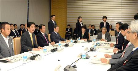 経済財政諮問会議で挨拶する安倍晋三首相(左から2人目)=12日午後、首相官邸【拡大】