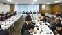 日本郵政の株主総会。西室泰三社長(右から1人目)ら経営陣と、国を代表して財務省の飯塚厚・理財局次長(手前)が出席した=26日午前、東京都千代田区霞が関の日本郵政本社(山沢義徳撮影)【拡大】