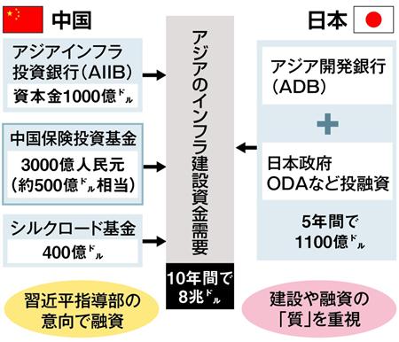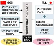 アジアの鉄道や発電所などインフラ建設の資金需要は今後10年間で8兆ドルに上るとされる。習近平指導部は、この需要に対応する資金の供給と建設受注、資機材輸出などに照準を合わせ、新シルクロード経済圏構想「一帯一路」を打ち出して関与を強めている。
