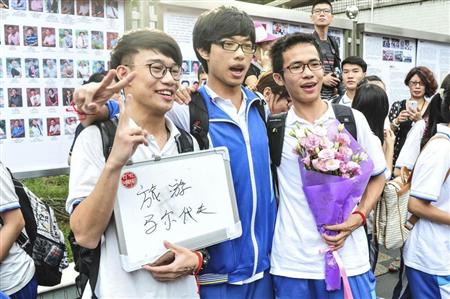 全国統一大学入学試験「高考」が終わった6月上旬、夏休みにやりたいことを白いボードに書く広東省の受験生(中国新聞社)【拡大】