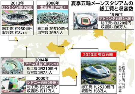 ずさんな計画のまま「見切り発車」-。2020年東京五輪・パラリンピックのメーン会場となる新国立競技場について、日本スポーツ振興センター(JSC)は7日、東京都内で開いた有識者会議で、総工費2520億円となった経緯など新整備計画案を説明、了承された。一部からは当初計画との違いを“公約違反”と指摘する声も。収支計画や財源確保の見通しも明確ではなく、課題は残されたままだ。