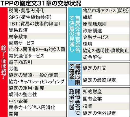 環太平洋戦略的経済連携協定(TPP)交渉は今週末から、成否をかけた大詰めの攻防に入る。舞台となるのは米ハワイで24日から開かれる交渉参加12カ国の首席交渉官会合と、続く28日からの閣僚会合だ。交渉は大筋合意の機運が高まっているが、知的財産などの難題を残し、出遅れが目立つカナダも重荷となっている。合意に至るかは、なお楽観ができない状況だ。(本田誠)