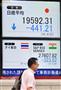 証券会社の電光掲示板を見ながら言葉を交わす投資家=21日、北京(ロイター)【拡大】
