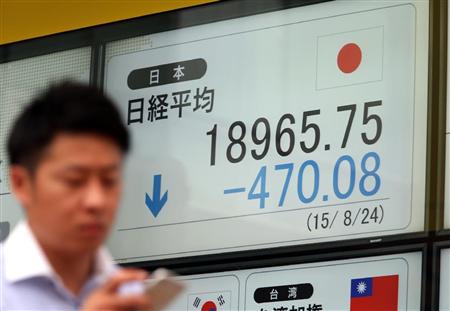 週明け24日の東京株式市場は、前週末の米国株式市場が約4年ぶりの下落幅を記録した流れを引き継ぎ、日経平均株価が大幅続落した。前週末比360円78銭安の1万9075円78銭で寄りついた後、下げ幅は400円を超え、取引時間中としては今年4月1日以来約5カ月ぶりに節目となる1万9千円台を割った。下げ幅は一時500円を超えた。