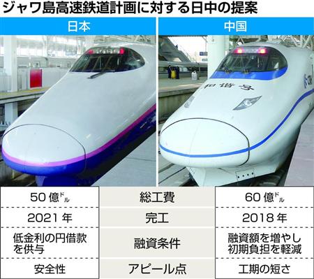 今回、インドネシアが日中案の双方とも採用を見送ったのは、昨秋に発足したジョコ政権の意向が強い。政権発足後は高速鉄道に公費を用いない方針に転換し、「国家予算を投入せず、融資への政府保証もしない」との姿勢を強調。加えて手厚い投融資まで求められた。