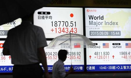 9日の東京株式市場で日経平均株価は急反発し、終値は前日比1343円43銭高の1万8770円51銭となった。上げ幅はバブル崩壊後の景気対策への期待から急騰した1994年1月31日(1471円24銭高)以来約21年7カ月ぶりの大きさで、過去6番目を記録。前日の欧米市場や9日の中国・上海市場の株価上昇で投資家心理が改善、リスクを取る動きが加速した。