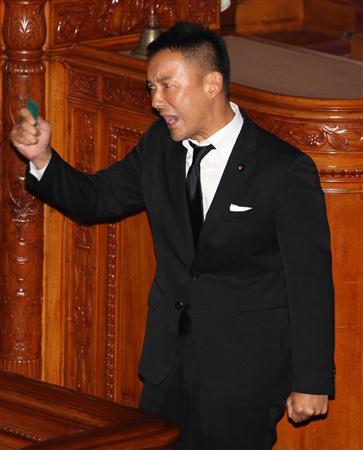 参院本会議で自説を叫ぶ山本太郎議員=19日未明、国会・参院本会議場(福島範和撮影)【拡大】