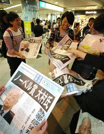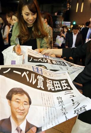 「スポーツの試合で言えば『21-0』の大差」と韓国紙、朝鮮日報(電子版)が報じた。ノーベル賞の自然科学分野の日本人受賞者は、医学・生理学賞の大村智・北里大特別栄誉教授と物理学賞の梶田隆章・東京大宇宙線研究所教授が加わり21人になる。一方、国内総生産(GDP)に占める研究・開発(R&D)投資の割合が世界1位の韓国はゼロ。例年「なぜ日本ばかりなのか」の類の記事がメディアを賑わすのだが、今年は冷静な分析や日本への称賛も目立つ。中国の研究者が先に受賞することへの焦りも背景にあるのか。