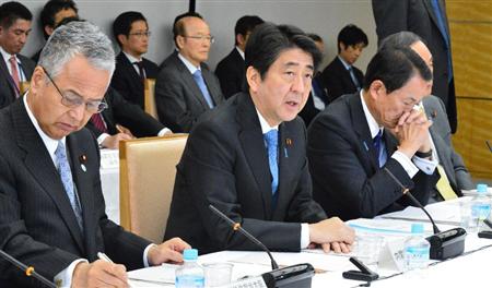 経済財政諮問会議であいさつする安倍晋三首相(中央)=4日午後、首相官邸(斎藤良雄撮影)【拡大】