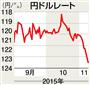 欧州では、ドイツの9月の鉱工業生産が前月比1・1%の減少とマイナス幅が13カ月ぶりの大きさとなったうえ、パリでのテロ事件で年末商戦に悪影響が出ると懸念されるなど、経済の不透明感が高まっている。このため、欧州中央銀行(ECB)が12月に追加緩和に踏み切るとの見方が強まっている。