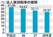 政府・与党は、法人税の実効税率について当初は16年度に31%未満に下げ、17年度に20%台とする方針だった。しかし、成長戦略の目玉として、安倍晋三首相が「早期の20%台」への下げを指示したことを受け、前倒しが必要と判断した。