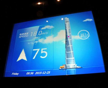 定員21人のエレベーターがピーク時に分速1080メートル(秒速18メートル、時速64.8キロメートル)で上昇し、三菱電機では「世界最高速」をうたっている。これまで東芝が台湾で納入した分速1010メートルのエレベーターが世界最速だった。今後もスピード競争が激化しそうだ。