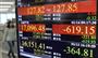 日経平均株価が大幅下落。道行くサラリーマンも足を止めた=14日午後、東京・八重洲(伴龍二撮影)【拡大】
