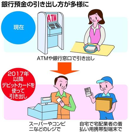 さらに、金融庁はキャッシュアウトについて、レジだけでなく、宅配業者やタクシーの支払い時などにも取り入れることを検討している。携帯型端末を活用してデビットカードを読み取り、自宅やタクシーの車内などで預金引き出しの手続きができれば、外出やATMを探し回るのが難しい高齢者らにとっては助けになりそうだ。