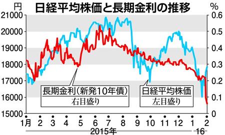1日の東京債券市場は日銀のマイナス金利導入決定を受け、長期金利の指標となる新発10年物国債の利回りが一時0.050%まで低下(国債価格は上昇)し、2営業日連続で過去最低を更新した。