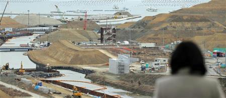 かさ上げ工事が進む宮城県南三陸町=11日午後【拡大】