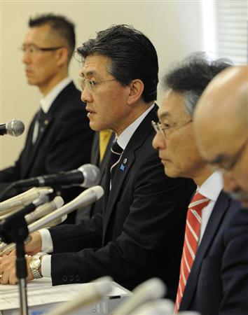 会見する、金属労協の相原康伸議長(中央)ら=16日、東京都中央区(寺河内美奈撮影)【拡大】