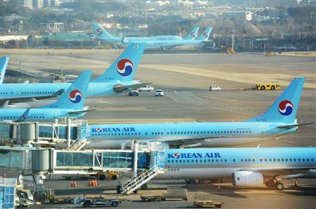 ソウルの金浦国際空港に駐機する大韓航空機【拡大】