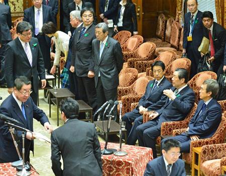 熊本県地震を受けて休憩に入った衆院TPP特別委員会=15日午前、国会・衆院第1委員室(斎藤良雄撮影)【拡大】