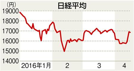 一方、熊本地震の影響も大きい。自動車や電機など熊本周辺に工場がある大手メーカーが受けている影響が広がっており、終値でもトヨタ自動車が前週末比で4.8%、ソニーが6.8%下げた。九州に関係がある観光、交通銘柄も下げが目立つ。