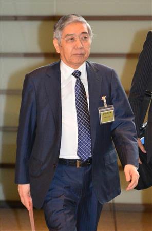21日、首相官邸に入る日銀の黒田東彦総裁。追加緩和への期待感から22日の東京市場は円安・株高が進んだ【拡大】