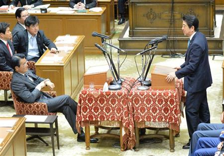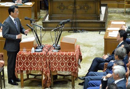 岡田氏「私は今の憲法9条を当面変える必要ないと思っているから、案はない。今の憲法でいい、9条でいいということだ。首相の言う平和主義というのは、侵略戦争を禁じるだけというのが、よく分かった。でも、日本国憲法は明らかに違った。最初は個別的自衛権しかだめという解釈でずっと来た。今もその解釈は正しいと思うが、しかし憲法改正草案は集団的自衛権の行使について限定なく認める。全く考え方が変わっている。平和主義は貫かれていない」