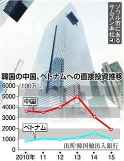 これまで政治的にも、経済的にも蜜月の関係であった韓国と中国だが、経済面で異変が起きている。韓国企業が中国への投資を激減させているのだ。対中投資額はこの2年間で6割も減った。鍵を握るのは韓国最大の企業グループ、サムスングループ。これまで、中国を輸出拠点として重視してきたが、その機能をベトナムへ移行させている。韓国の国内総生産(GDP)の約2割を握る“サムスン帝国”の動向は、関連企業や取引企業のみならず、他の企業グループにも波及するとみられる。いったい何が起きているのか。