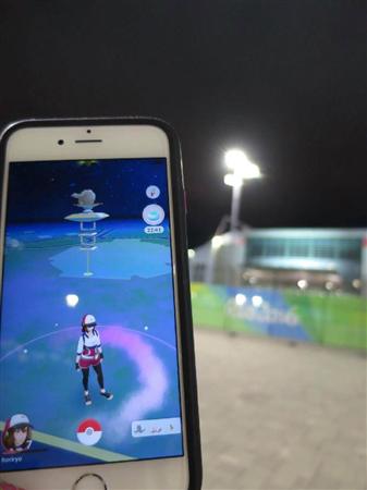 ブラジルで配信が始まった「ポケモンGO」の画面。奥はリオデジャネイロ五輪公園=3日(共同)【拡大】