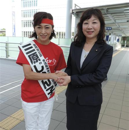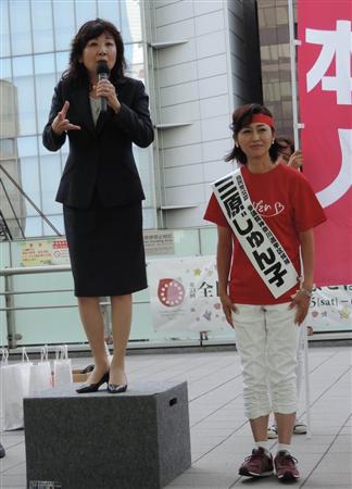 参院選で自民党公認の三原じゅん子氏(左)の応援に駆けつけた野田聖子氏=横浜市港北区【拡大】