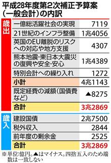 26日召集の臨時国会に政府が提出した平成28年度第2次補正予算案は、弱含む景気を下支えしデフレ脱却につなげる狙いだ。ただ、財源を補ったのは4年ぶりに増発した国債。日銀は金融緩和の枠組みを修正したが、国債を低金利で発行しやすい環境は続く。3次補正予算の可能性もくすぶる中、財政規律の緩みにつながる恐れがある。