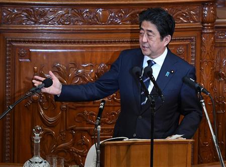 衆院本会議で所信表明演説する安倍晋三首相=26日午後、国会・衆院本会議場(宮川浩和撮影)【拡大】