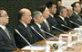 支店長会議に臨む日銀の黒田総裁(左から3人目)=17日午前、日銀本店【拡大】