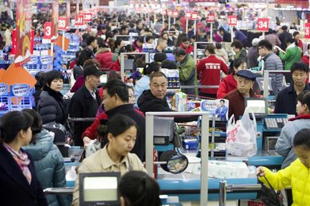 山西省太原市のスーパーでも11日、「独身者の日」のセールが行われていた。今年はオンラインで購入し、実店舗で受け取る“オン・オフの連携”が進み、荷物を待つ客のイライラ緩和に役だったようだ(中国新聞社)