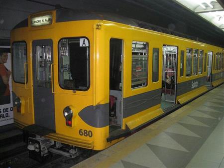 ブエノスアイレスの地下鉄を走る東京メトロ「丸ノ内線」の中古車両。塗装は黄色とグレーのストライプにリニューアルしたが今も現役だ【拡大】
