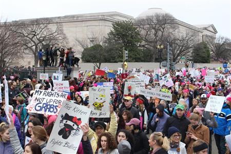 参加者は女性の問題だけでなく、トランプ政権のさまざまな政策にも不安を抱えている。メリーランド州から駆けつけた販売員、マーシャ・ハリスさん(21)は「移民や地球温暖化への考えにも反対だ。トランプ氏の思い通りにさせてはならない」。