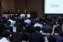プレミアムフライデーの取り組みをPRする企業の役員ら=21日午前、東京都千代田区【拡大】