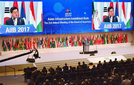 韓国・西帰浦で開かれたAIIBの第2回年次総会開幕式=16日(共同)【拡大】