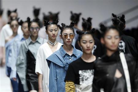 中国国際ファッションウイーク(2017/18秋冬コレクション)に行われた中国の若者向けブランドのファッションショー=4月上旬、北京(中国新聞社)【拡大】
