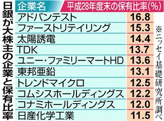 日銀は2010年に景気を下支えする包括的な金融緩和策の一環として、ETFの買い入れを開始。黒田東彦総裁就任後の13年に年1兆円、14年に年3兆円ペースに拡大するなど、購入規模を増やしてきた。この結果、現在の資産規模は、世界最大規模の機関投資家である年金積立金管理運用独立行政法人(GPIF)と米資産運用大手のブラックロックに次ぐ規模にまで拡大している。