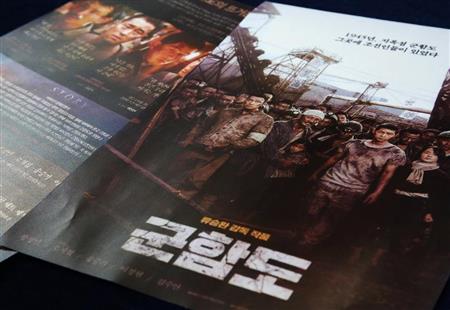 映画館内に置かれていた「軍艦島」を舞台とした韓国映画のパンフレット【拡大】